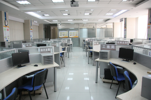 會(huì)計(jì)仿真模擬實(shí)訓(xùn)室是全仿真模擬企業(yè)會(huì)計(jì)環(huán)境的綜合模擬實(shí)訓(xùn)室,包括主體企業(yè)、客戶企業(yè)和相關(guān)部門三個(gè)部分,通過仿真模擬實(shí)訓(xùn),能使學(xué)生全面、系統(tǒng)地了解企業(yè)的業(yè)務(wù)流程、內(nèi)部控制設(shè)計(jì)、會(huì)計(jì)憑證的填制與傳遞,訓(xùn)練學(xué)生的分單技能和會(huì)計(jì)電算化處理技能。